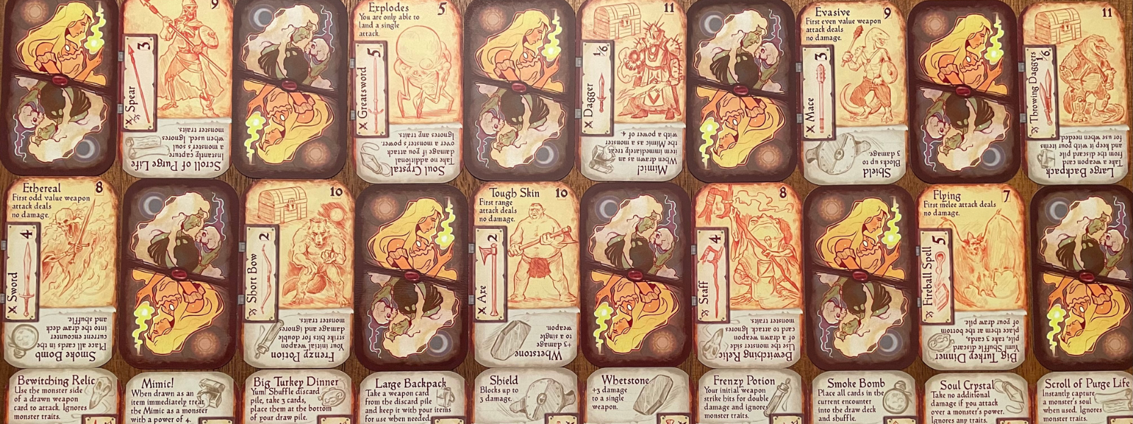 Treasure – What is a dungeon crawl without treasure? This deck will include the majority of the best items and equipment in the game and can be found on the corpses of your foes, in chests, or may be sold by a wandering merchant.